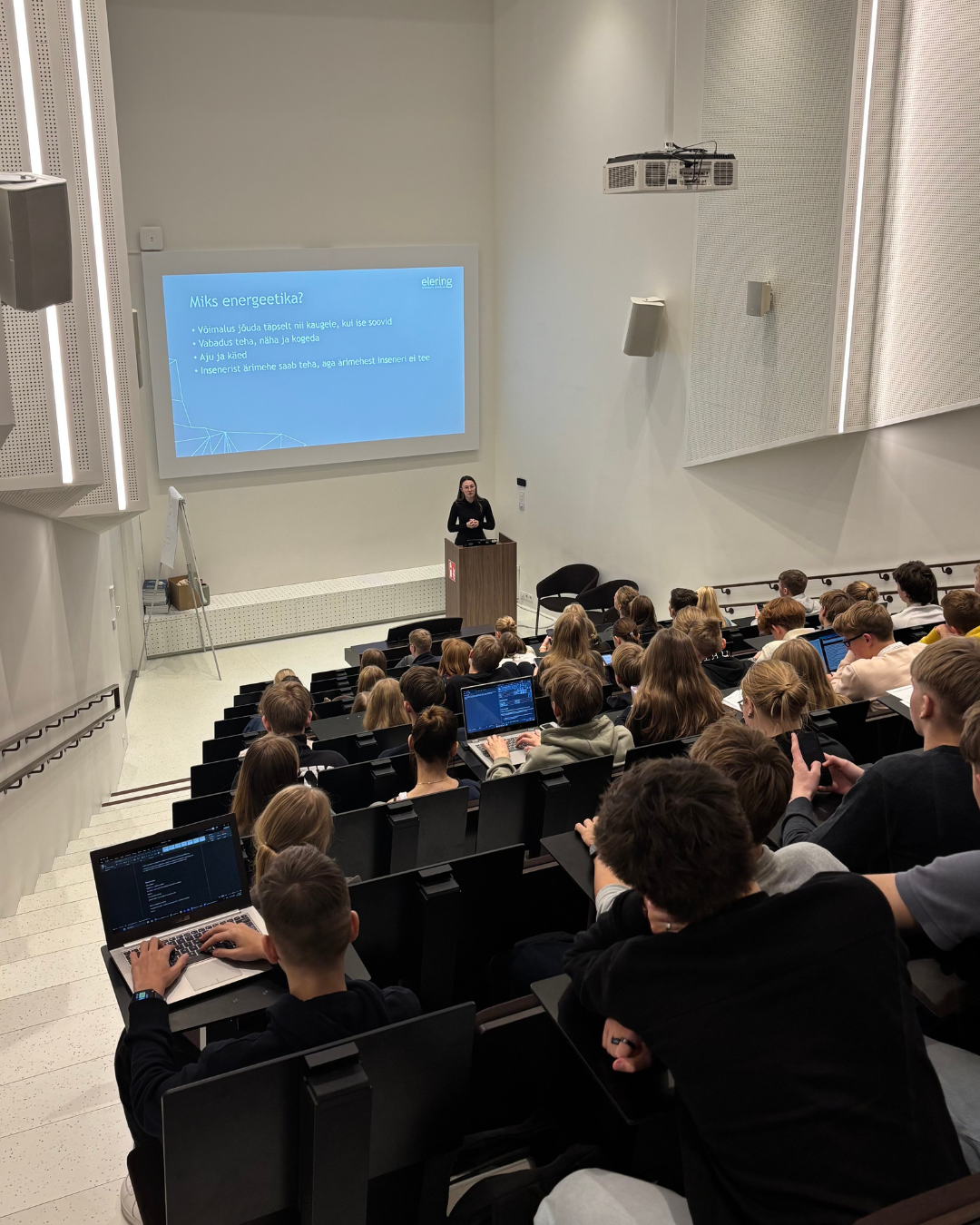 Nädala lõpus andis põhjaliku külalisloengu energeetikast ja inseneeriaõppest Brenda Pent, Tallinna Tehnikaülikooli elektroenergeetika eriala magistrant ja Eleringi projektijuht.
